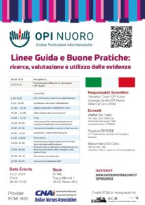 In occasione della presentazione del bilancio consuntivo 2022 che si terrà a Nuoro il 04 Ottobre 2023, seguirà l’evento ECM: Aggiornamenti ed EBP sulla prevenzione