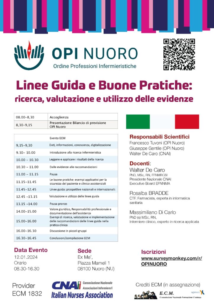 In occasione della presentazione del bilancio di previsione 2024 che si terrà a Nuoro presso la sala conferenze ExMé, Piazza Goffredo Mameli, 1, Nuoro il 12 Gennaio 2024, seguirà l’evento formativo (7 crediti ECM):